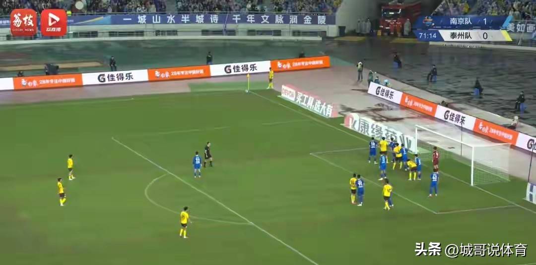 关键时刻来到了第71分钟,泰州队球员王振宇踢了个角球破门成功,致使泰州队战平南京队。南京队1-1战平泰州队。