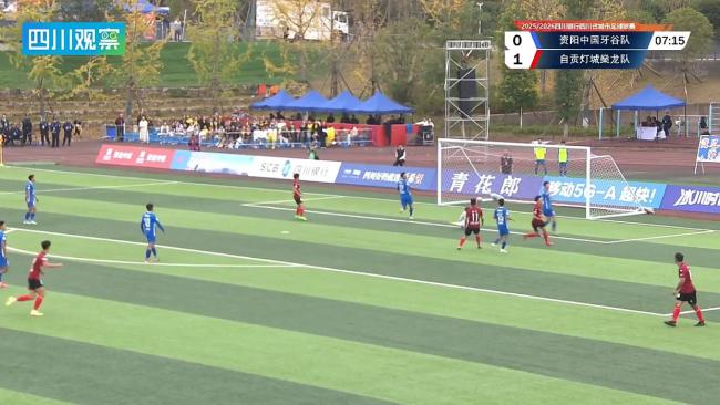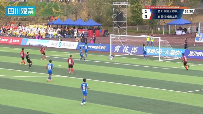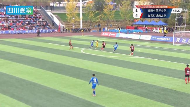 第20分钟,资阳队后场传球失误,自贡队抓住机会快速抢断反击,边路传中后11号队员劲射破门,将比分扩大到0:3。尽管形势不利,资阳队并未放弃。第34分钟,资阳队通过禁区外传球配合,头球摆渡后插上队员怒射破门,扳回一球,比分变为1:3。