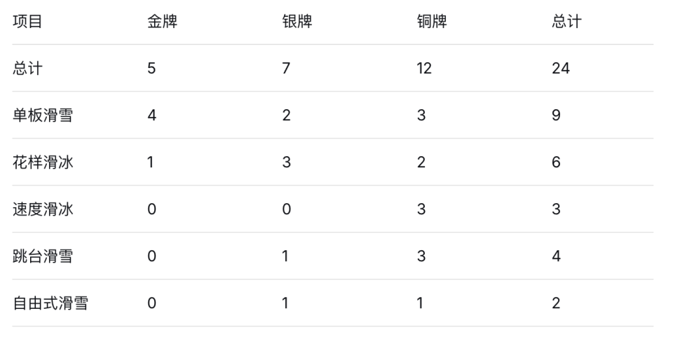 具体来看,日本队的5枚金牌分布清晰。单板滑雪贡献了4枚金牌,花样滑冰凭借三浦璃来/木原龙一组合在双人滑的发挥斩获1金。而将目光转向日本队的总奖牌分布时,一幅由多个项目织而成的多点开花的图景浮出水面(见下表)。