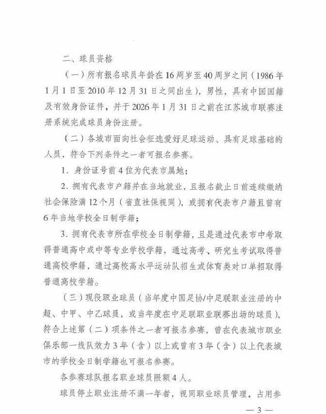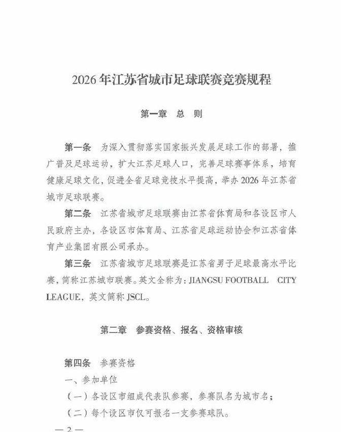 江苏城市足球联赛,江苏足球联赛,足球赛程,积分榜,城市足球队,业余足球,聚焦2025江苏城市足球联赛,提供实时赛程、积分榜、队伍信息、直播入口与报名指南,汇聚全省热爱足球的城市代表队,打造属于江苏人的足球狂欢!最近,有个关于2026年“苏超”新规的消息特别受关注。这次新规对球员资格和赛制做了很大调整。这既体现了对赛事公平性的重视,也增强了“苏超”作为地方性联赛的独特魅力。